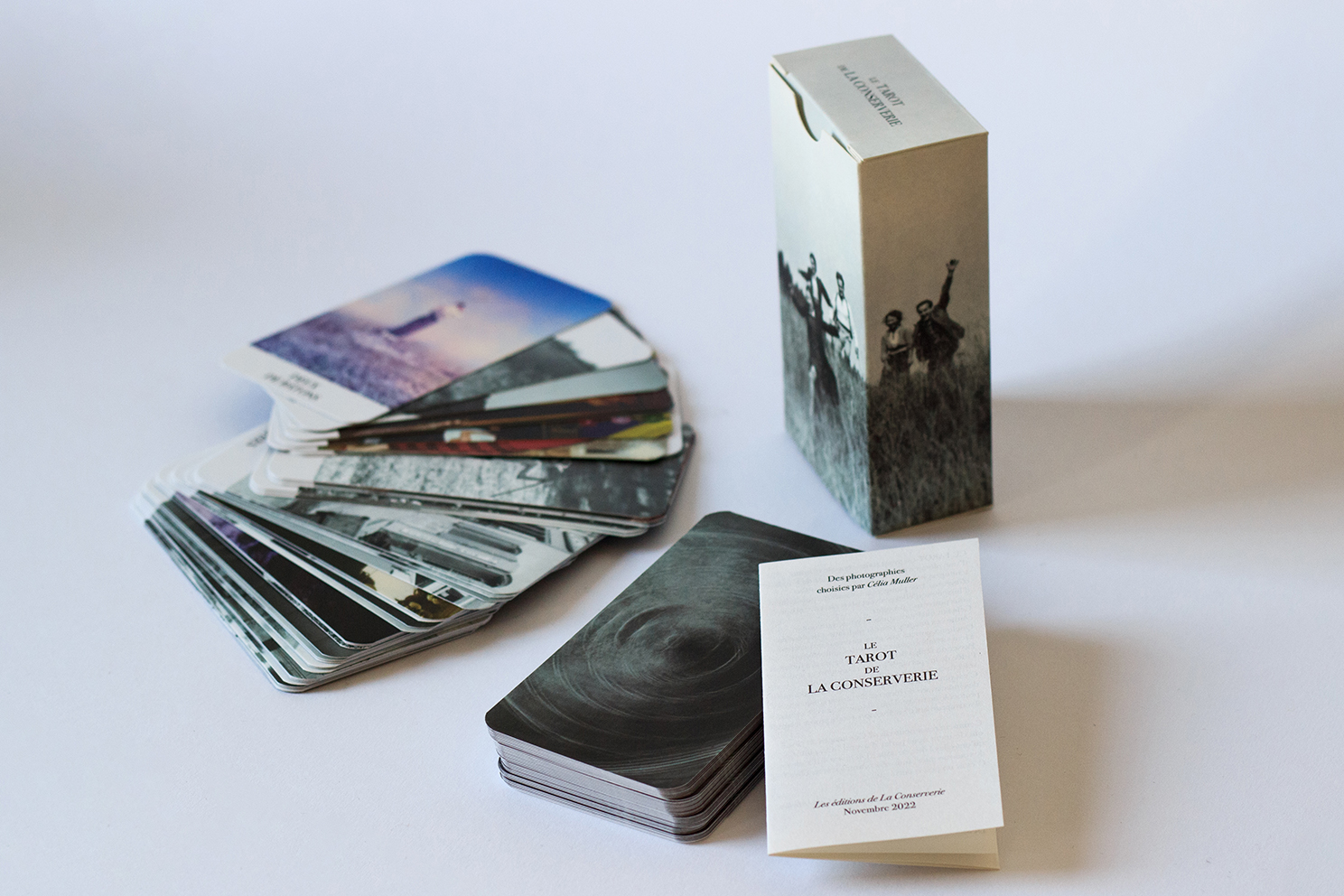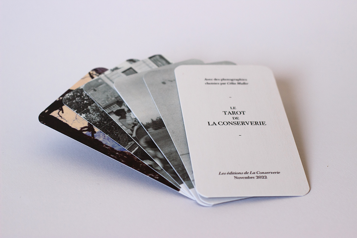 Ce Tarot est avant toute chose le résultat d’une plongée de plus dans les photographies du Fonds iconographique de La Conserverie, un lieu d’Archives. Une plongée dans toutes les possibilités d’histoires qu’elles peuvent nous raconter et que nous pouvons y projeter. Cela fait quelques années maintenant que je côtoie ces images, pour la réalisation de dessins. Quelques années que je m’intéresse plus ou moins sérieusement aux cartes et à leurs symboliques, que je m’intéresse à l’objet, que je le collectionne. Passer du temps dans toutes ces images, a un peu induit l’idée de les donner à voir à travers un Tarot et une sélection purement subjective et sensible. C’est pour quoi il n’est pas question ici de donner des indications de lectures de ces cartes, ni de donner un protocole de tirage. Une fois que ce jeu est à vous, il vous appartient d’en développer votre propre usage.